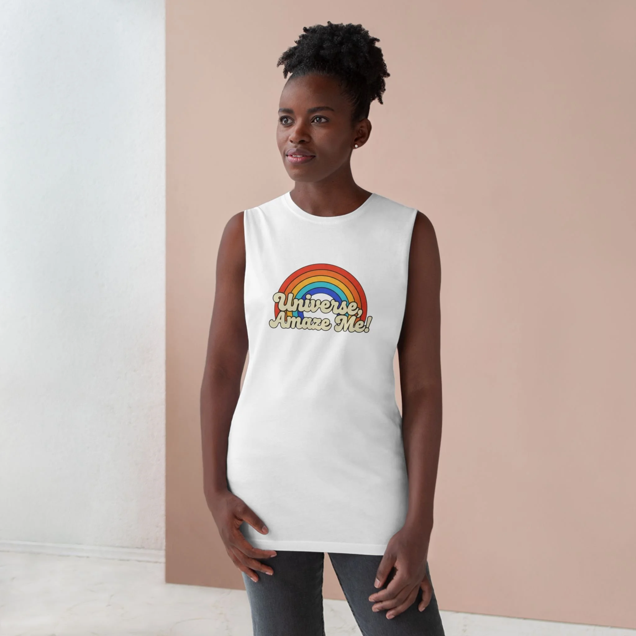 Retro Rainbow Tank — "Universe, Amaze Me!" Spiritual Graphic Tank Top